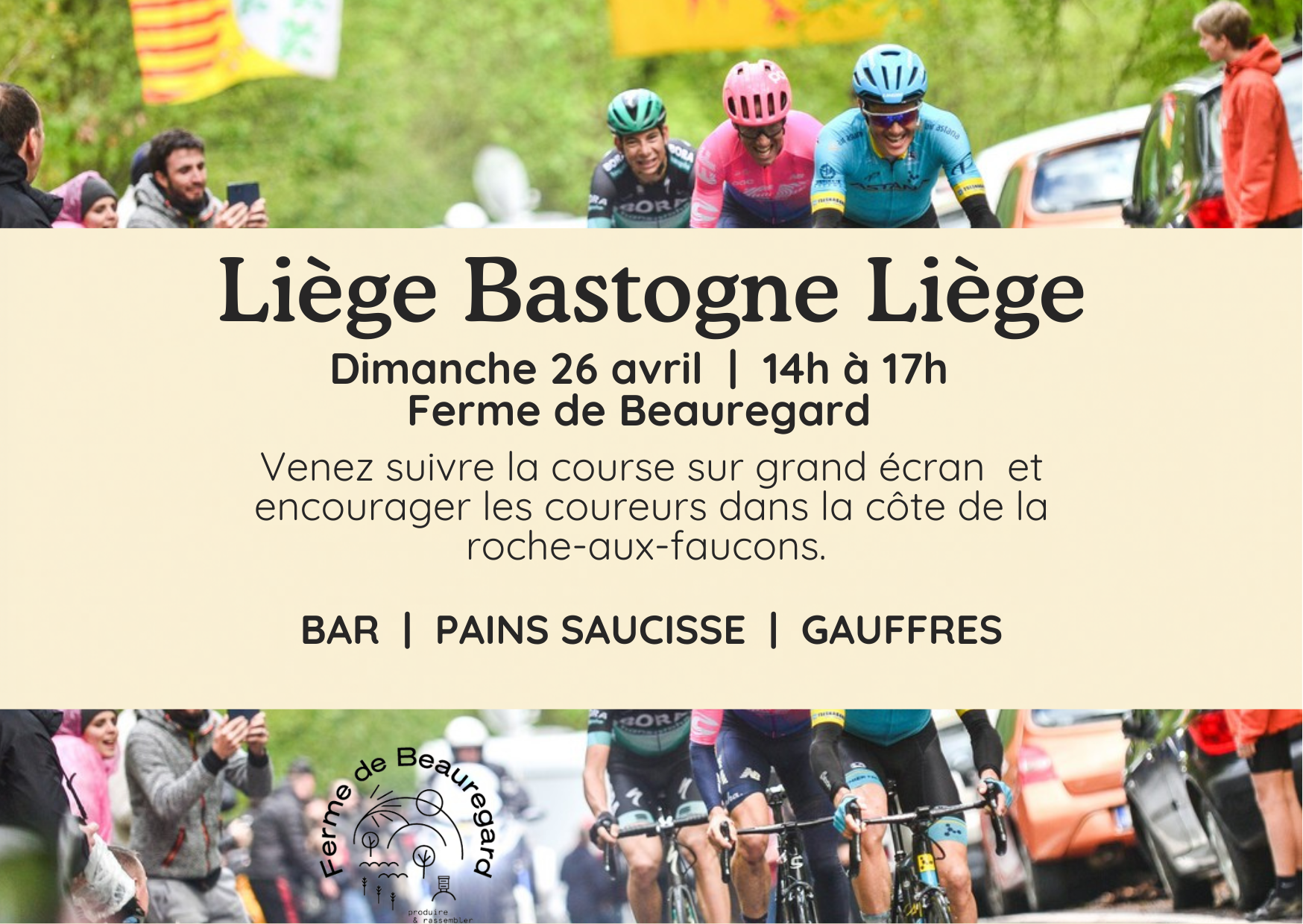 Bar avec bières, softs, pains saucisse et gaufres lors du passage de la course cycliste Liège-Bastogne Liège.